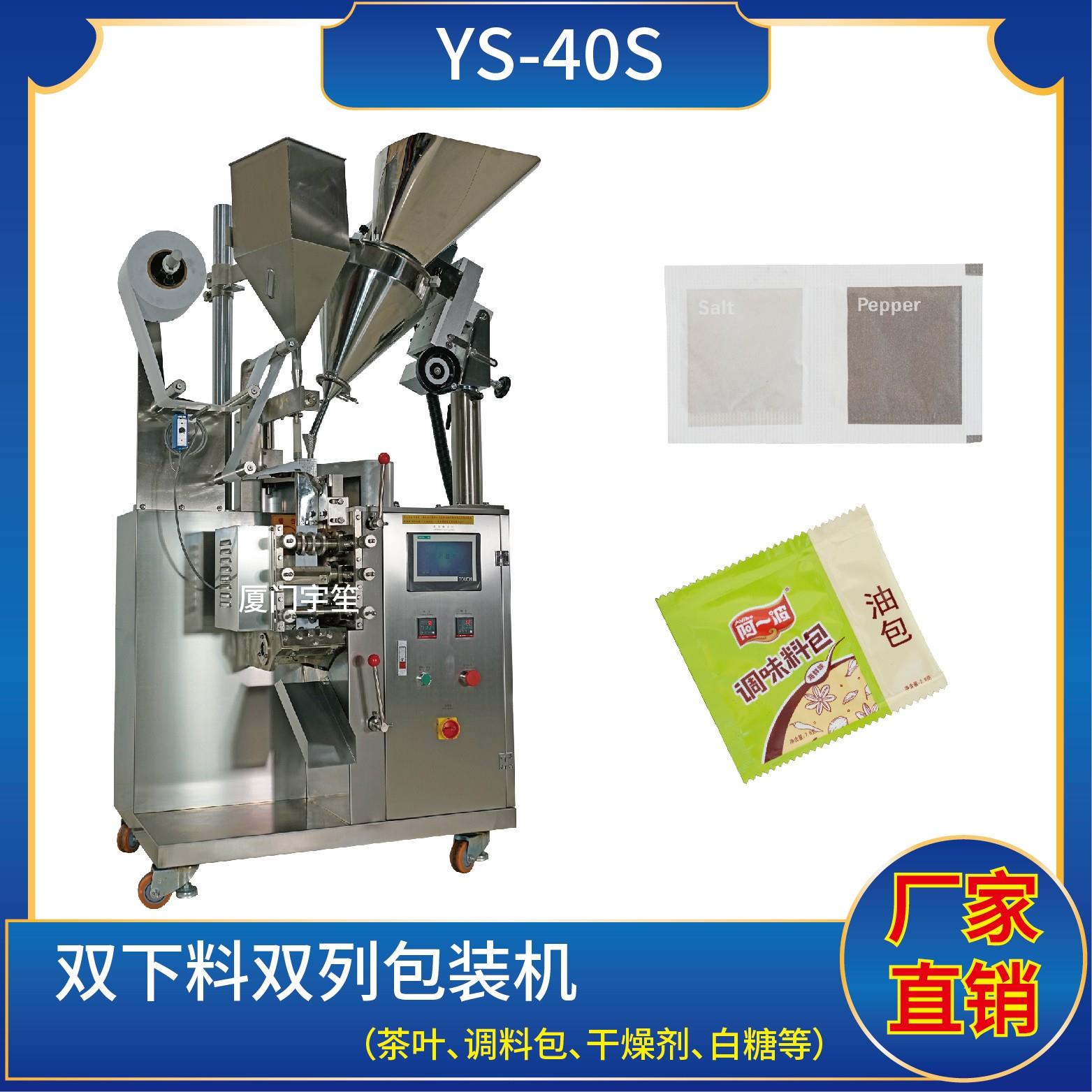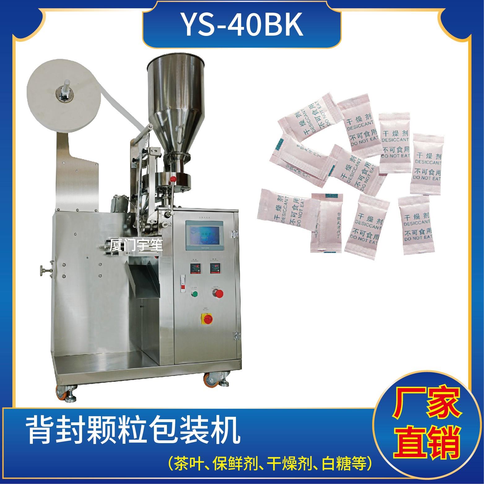 YS-40AK 三邊封顆粒自動(dòng)包裝機(jī)特 點(diǎn) 1、適用于方便面行業(yè)湯包,干燥劑,沖劑,碎茶等小顆粒狀物品包裝。2、可自動(dòng)完成制袋、計(jì)量、充填、封合、分切及計(jì)數(shù)等功能。3、包裝材料:茶葉濾紙、復(fù)合膜、無紡布。 封口方式:三邊封技術(shù)參數(shù) 計(jì)量范圍:10 - 40 g(0.6 ~ 33 ml)制袋尺寸:長 ( L ) : 40 - 110 mm …