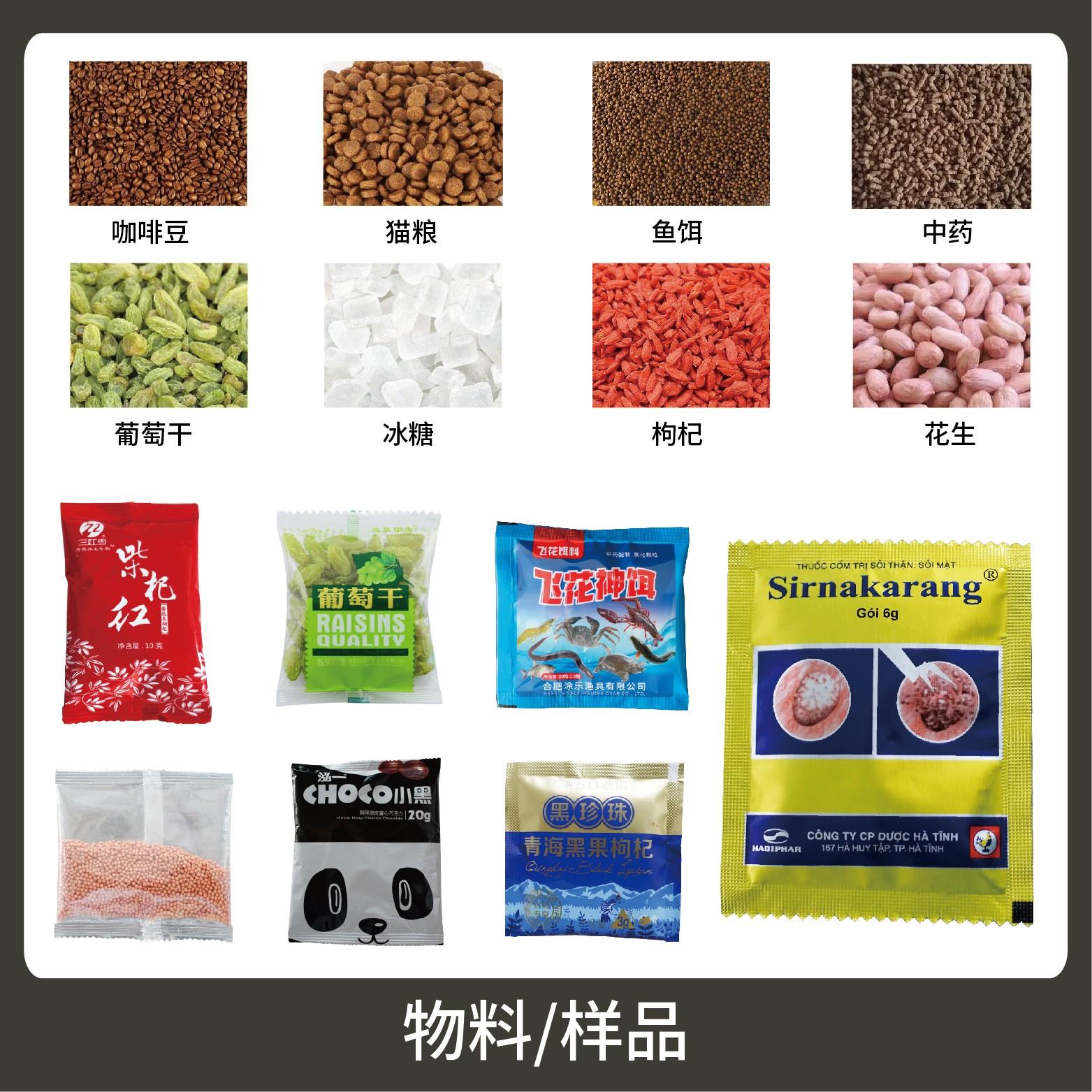 適用于食品、醫(yī)藥、化工、化妝品行業(yè)中顆粒物品的計量包裝,如:種子、中藥顆粒、調(diào)味料。